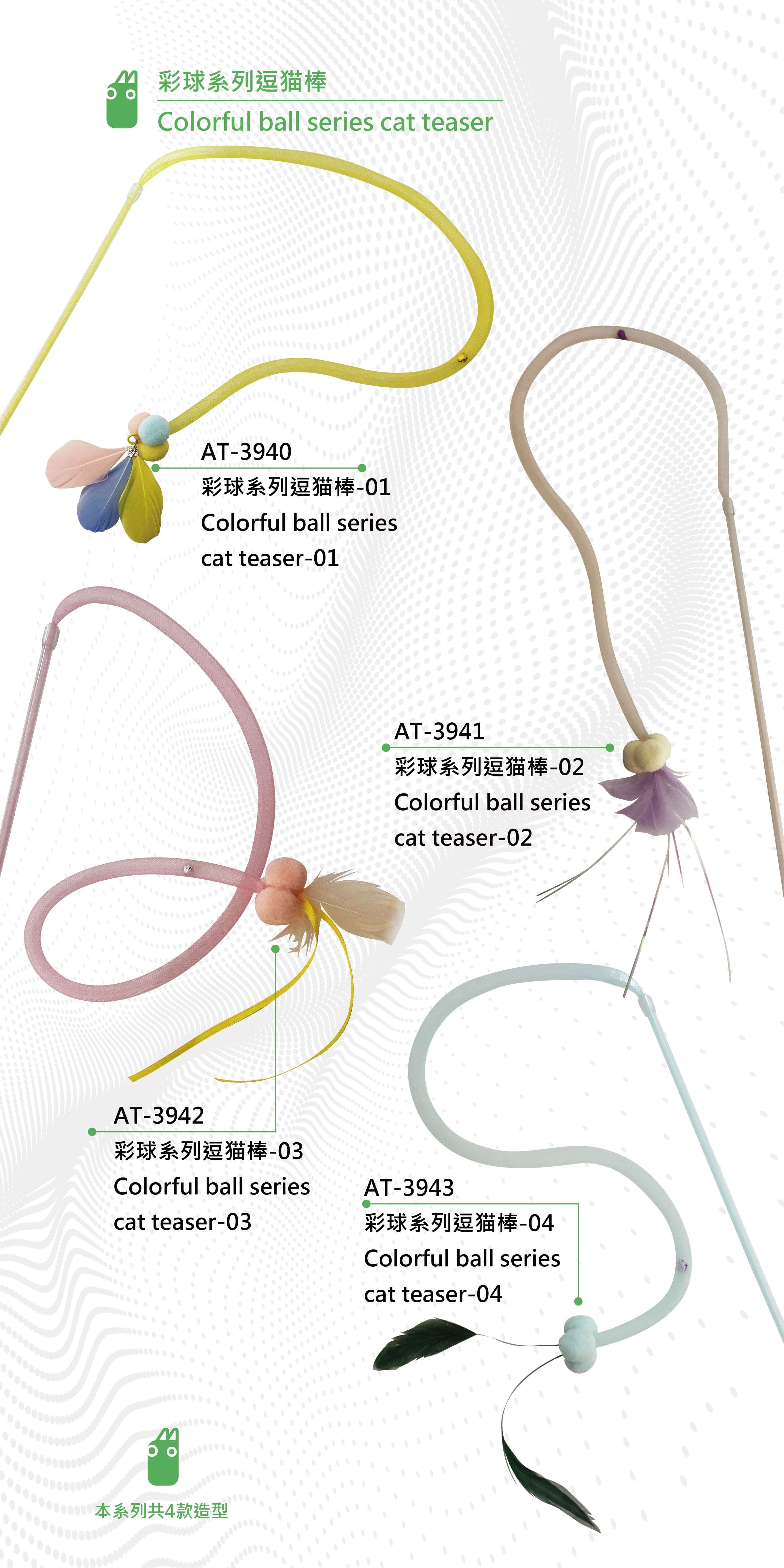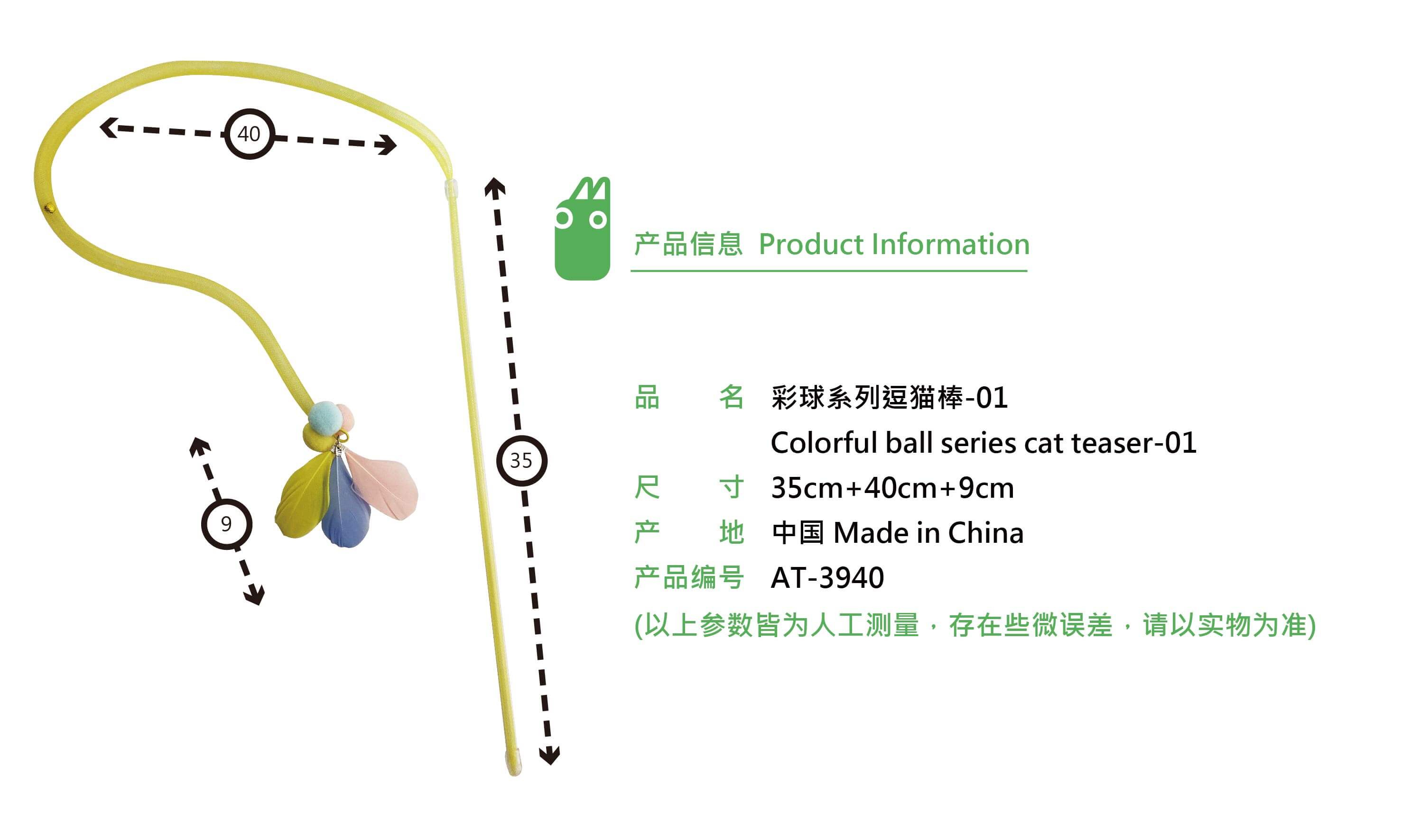 AT-3940 彩球系列逗猫棒-01 Product Size: 35+40+9cm Materials:PVC stick, nylon mesh tube, pendant (polyester, goose feather)