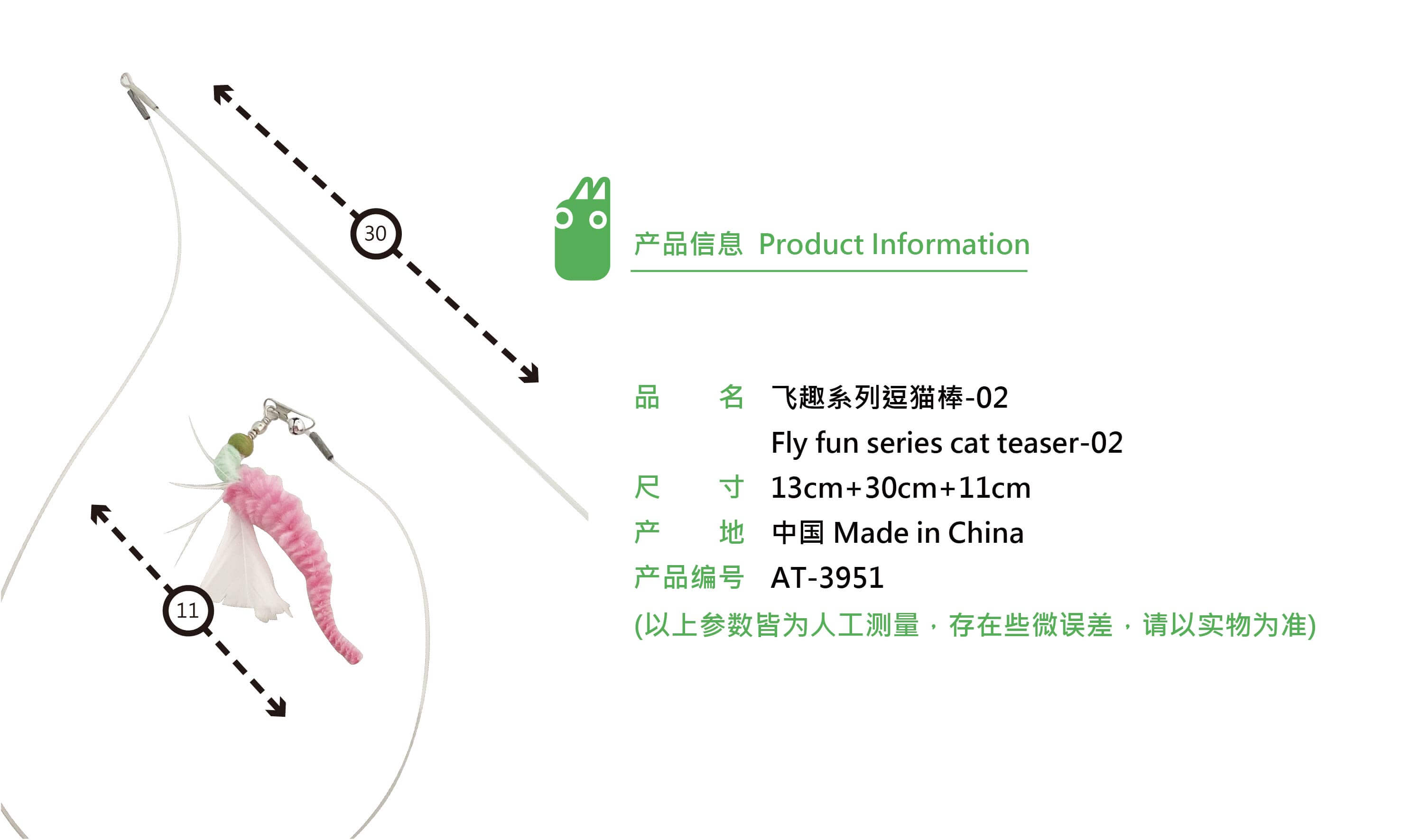 AT-3951 飞趣系列逗猫棒-02 Product Size: 13+30+11cm Materials:PMMA handle, Carbon fiber stick, pendant (polyester, chicken feather)