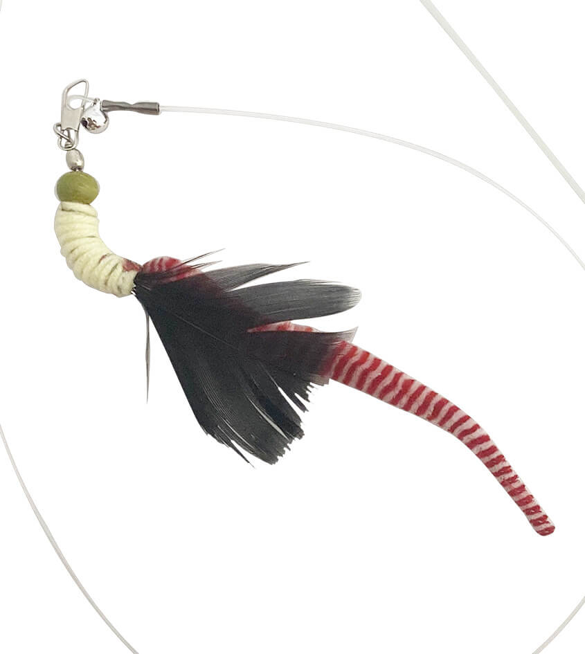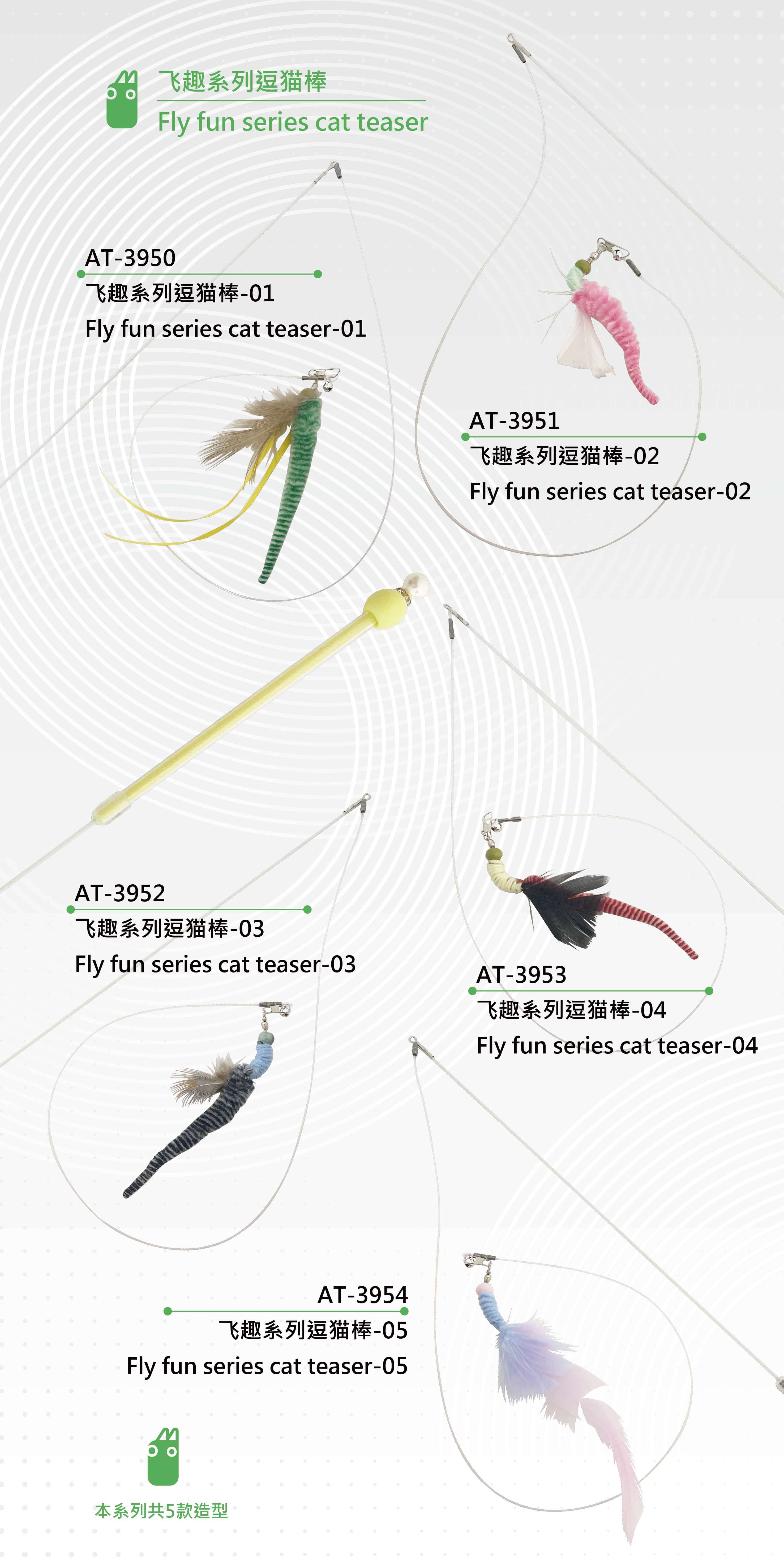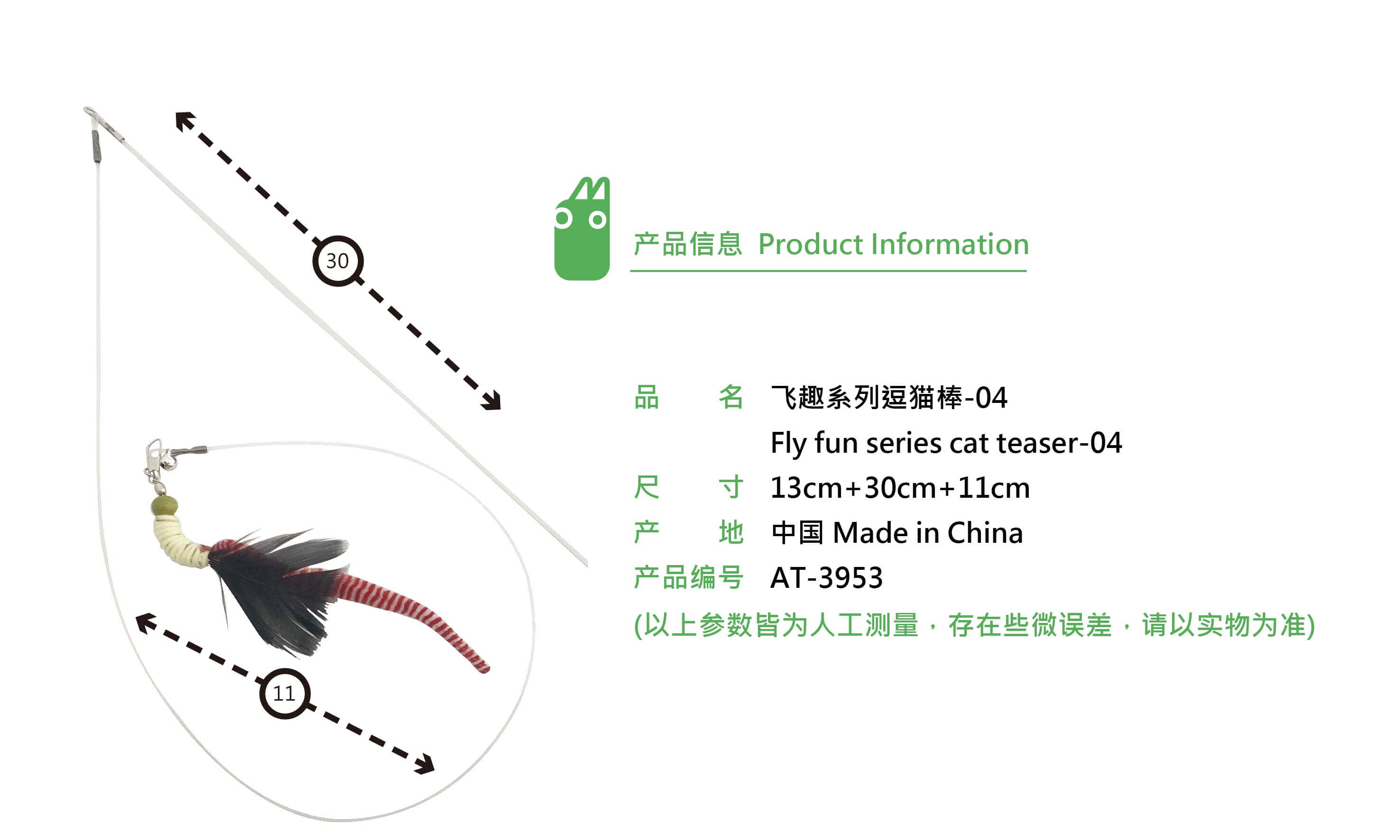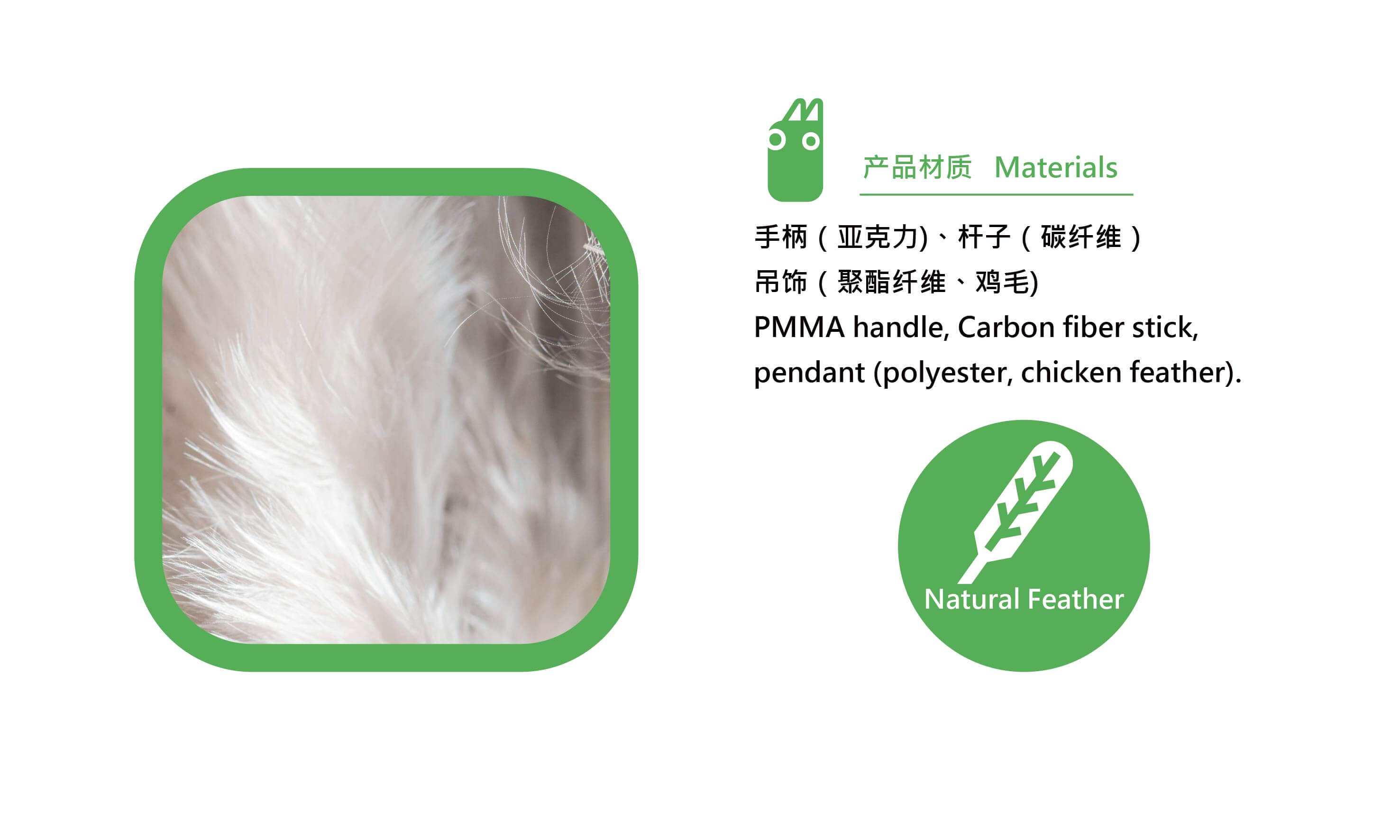 AT-3953 飞趣系列逗猫棒-04 Product Size: 13+30+11cm Materials:PMMA handle, Carbon fiber stick, pendant (polyester, chicken feather)