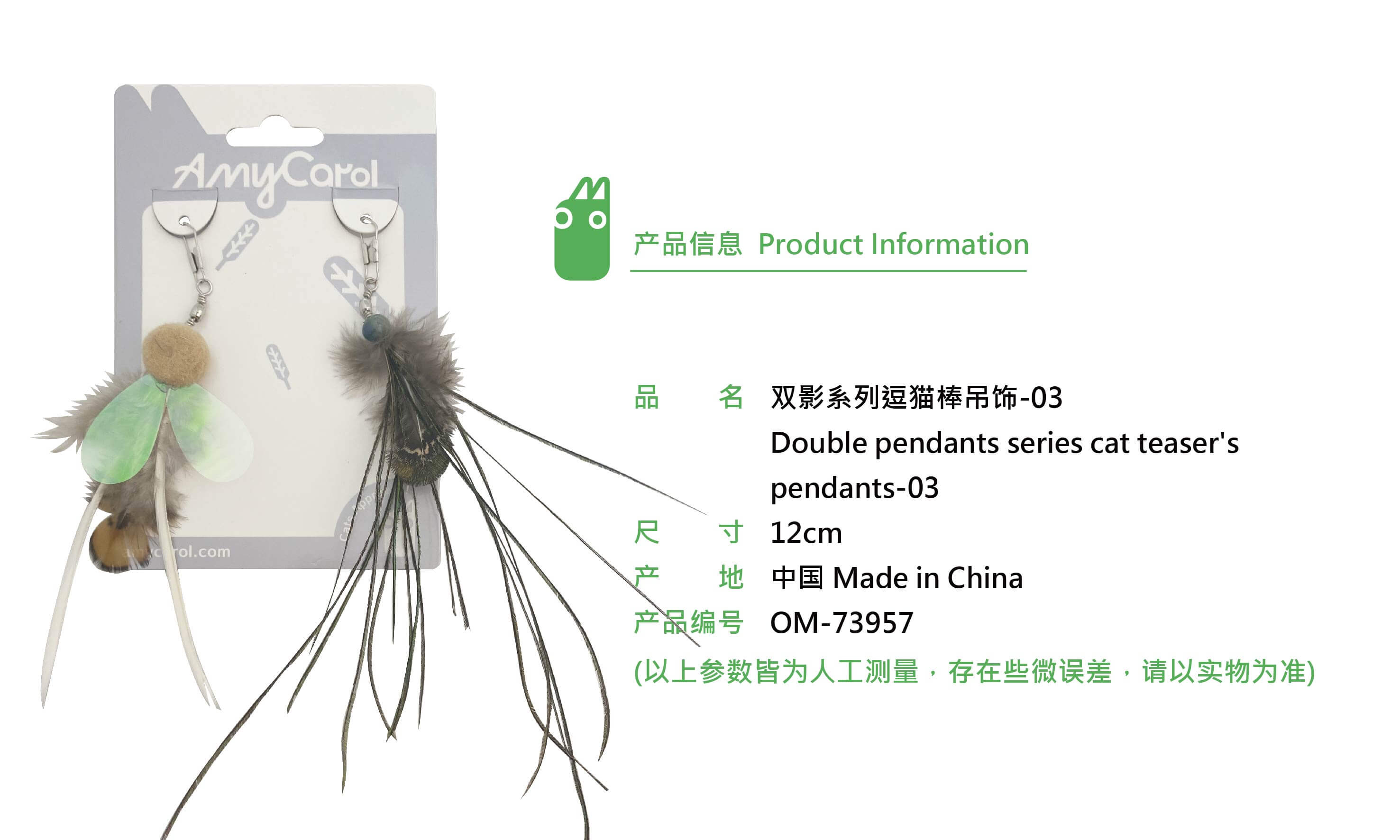OM-73957 双影系列逗猫棒吊饰-03 Materials:Polyester, chicken feather, goose feather, peacock feather