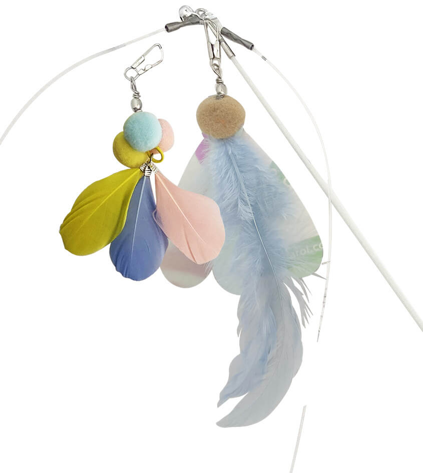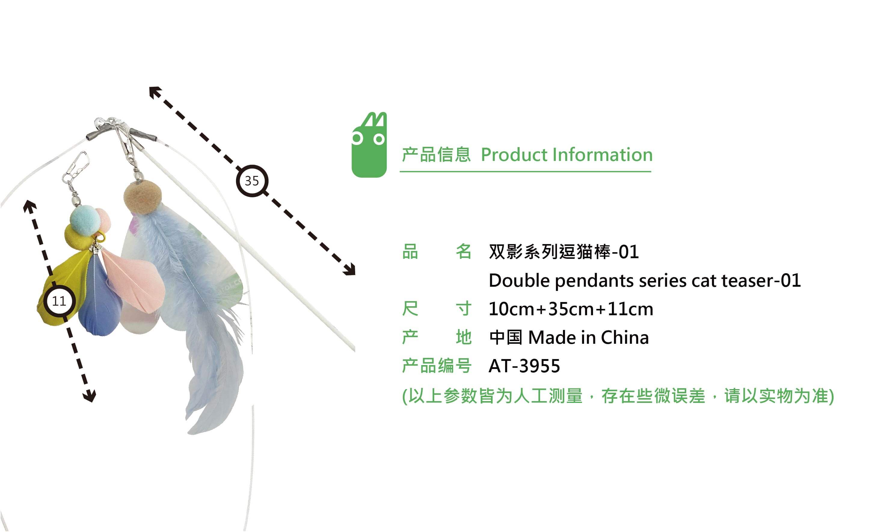 AT-3955 双影系列逗猫棒-01 Product Size: 10+35+11cm Materials:Wood handle, carbon fiber stick, pendant (polyester, chicken feather, goose feather )