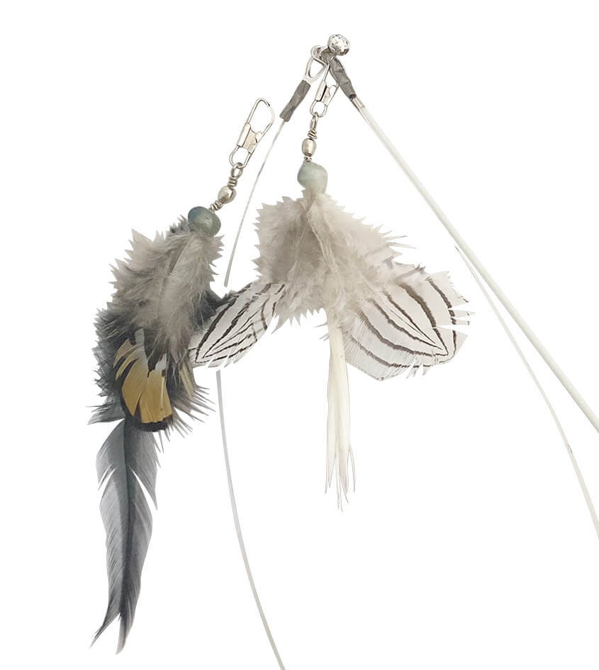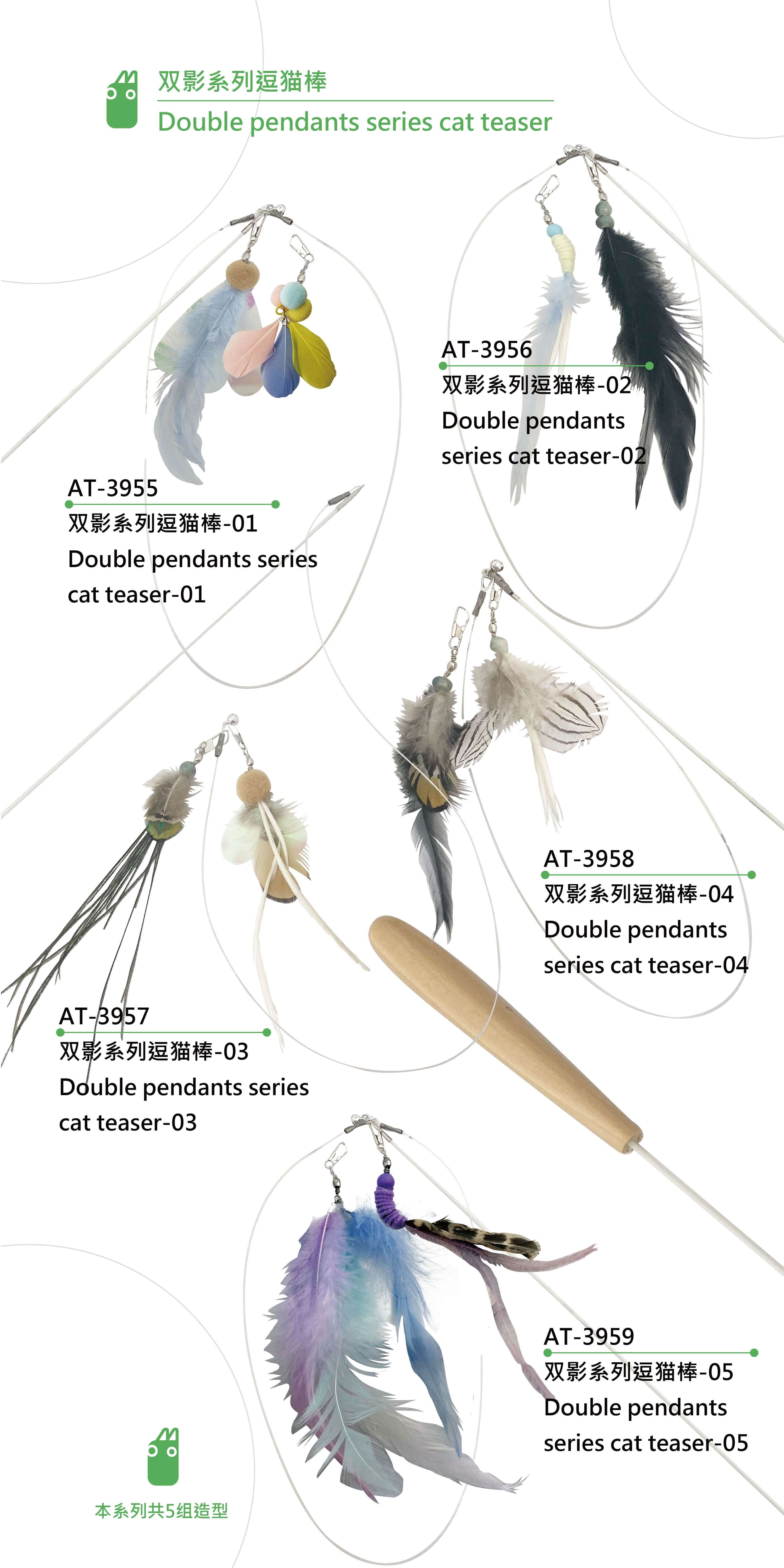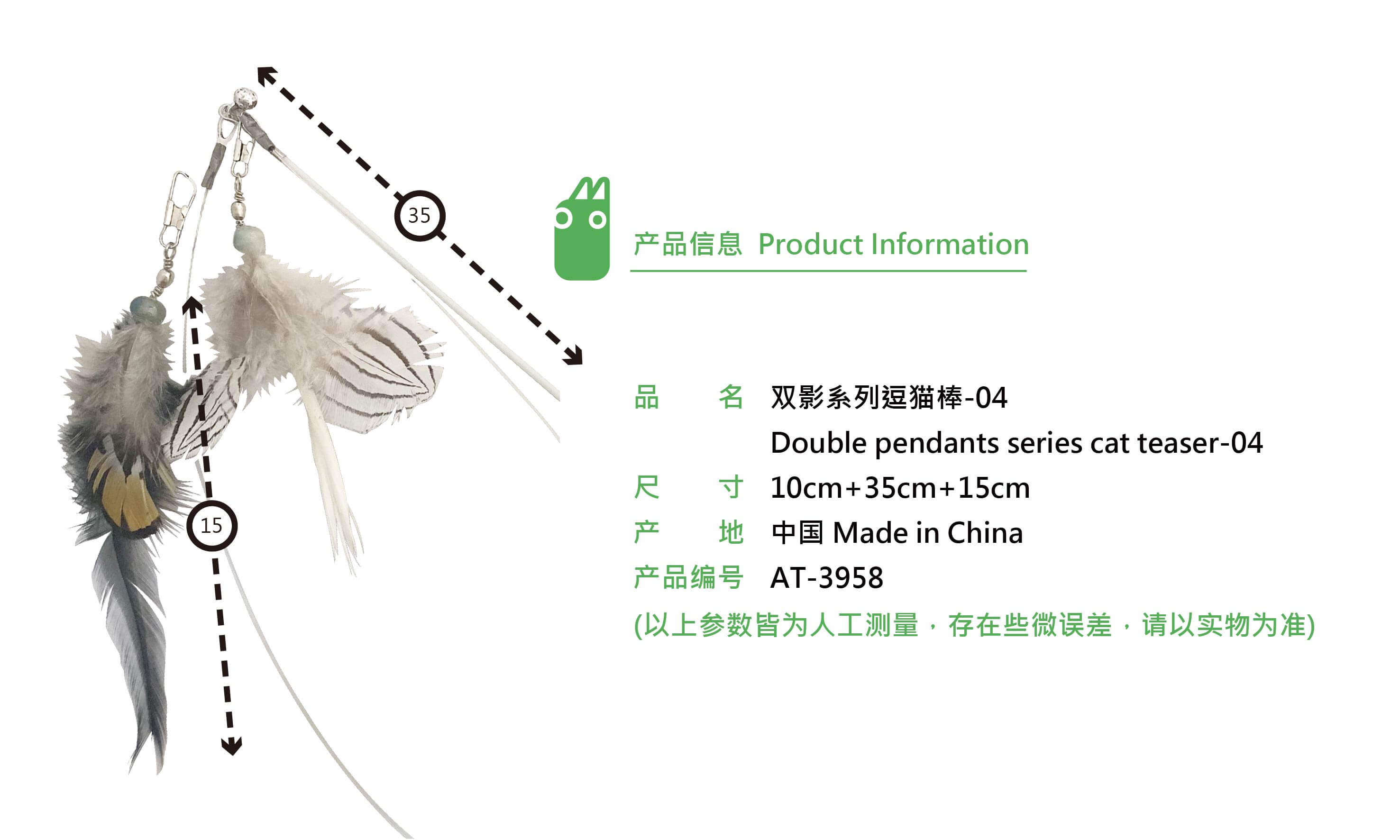 AT-3958 双影系列逗猫棒-04 Product Size: 10+35+15cm Materials:Wood handle, carbon fiber stick, pendant(chicken feather, goose feather)